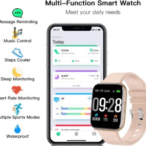 Smart Watch for Women Men,Fitness Tracker with Heart Rate,Blood Pressure,Blood Oxygen,IP67 Waterproof Pedometer Smartwatch with Sleep Tracker,Steps,Music,Weather Forecast for Android iPhone(Pink)